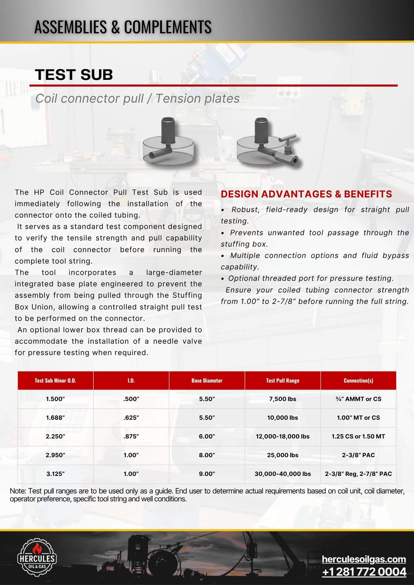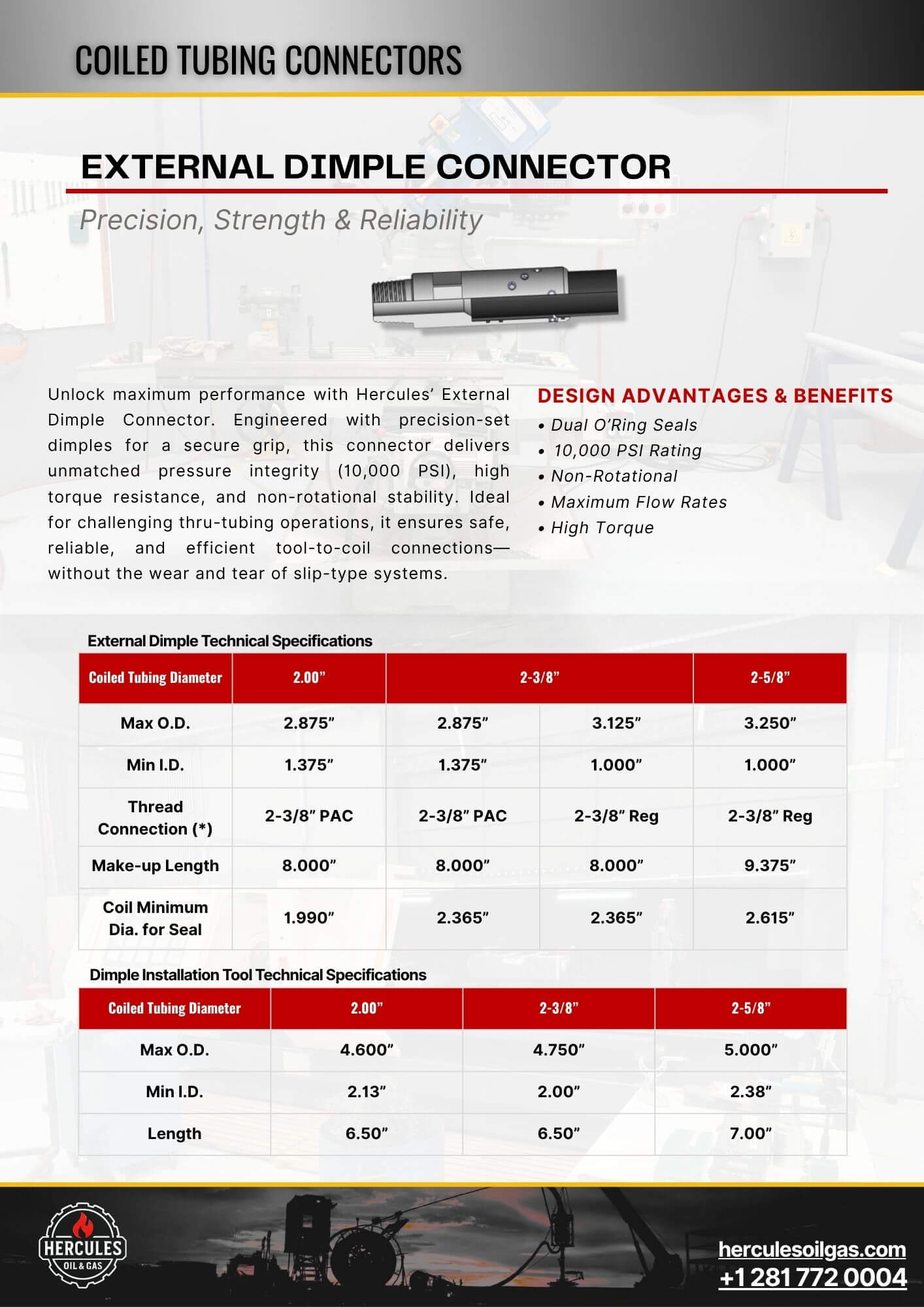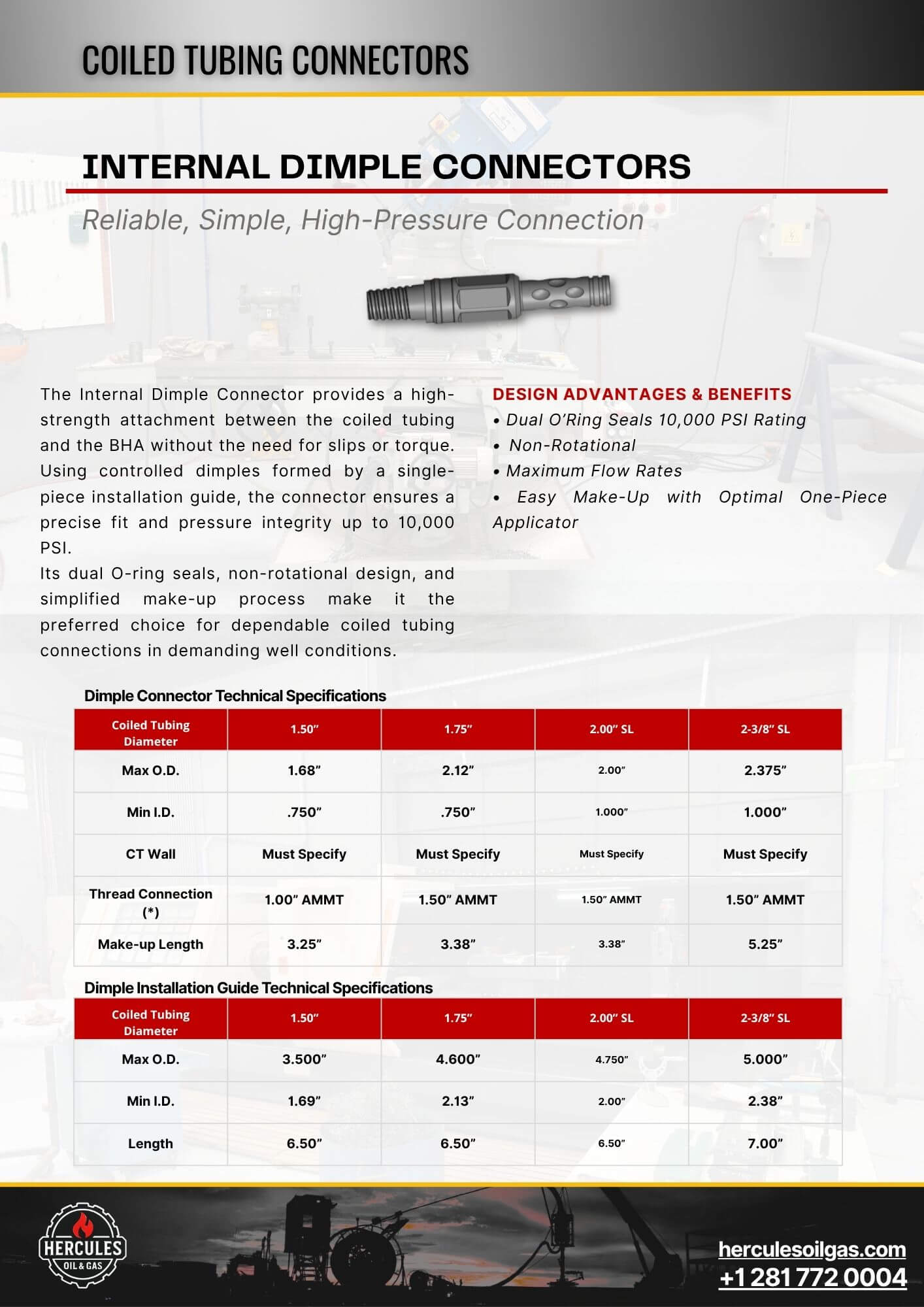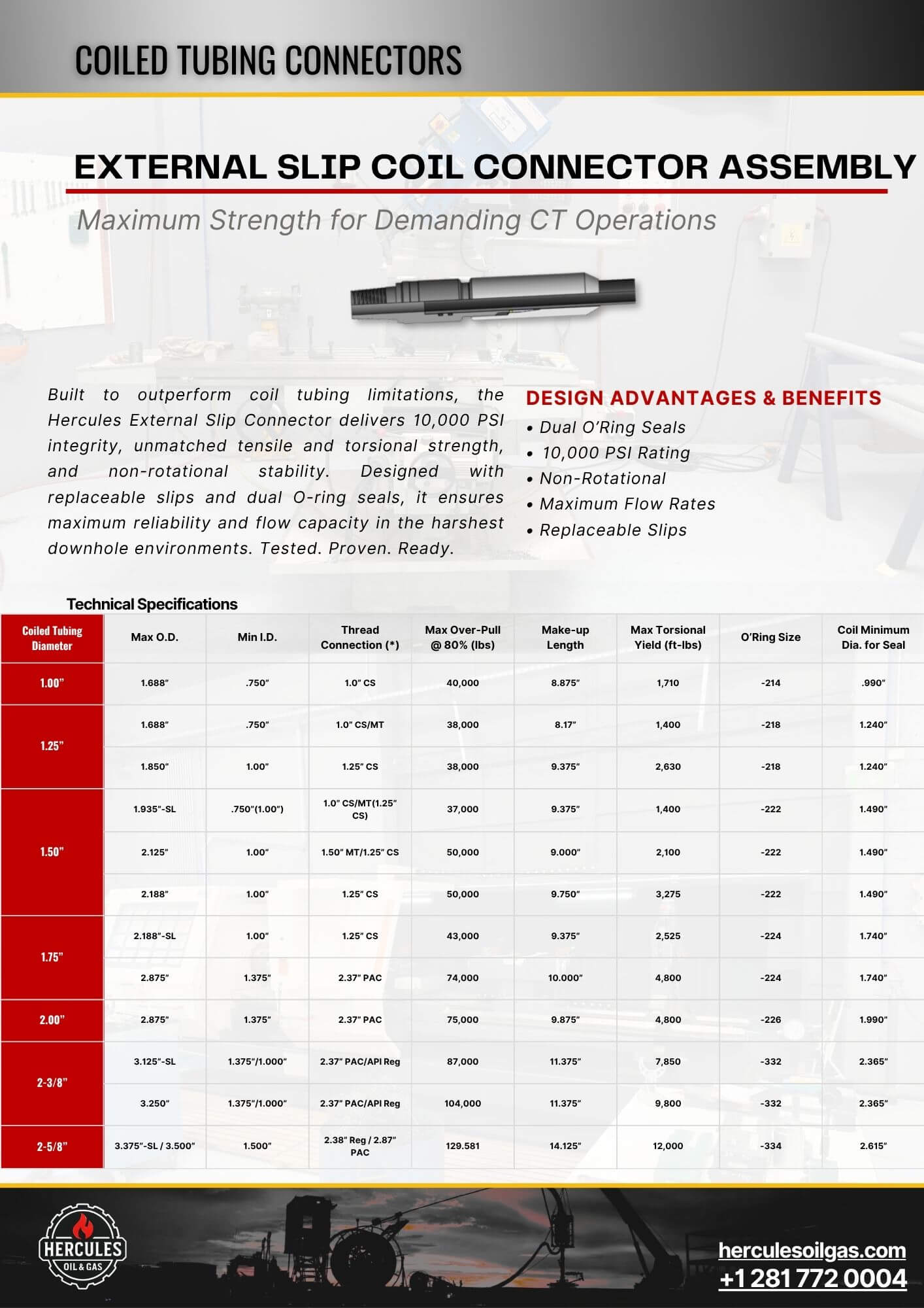 Through advanced metallurgy, rigorous testing, and continuous innovation, Hercules delivers solutions that reduce downtime, extend tool life, and enhance safety in every coiled tubing and thru-tubing operation.